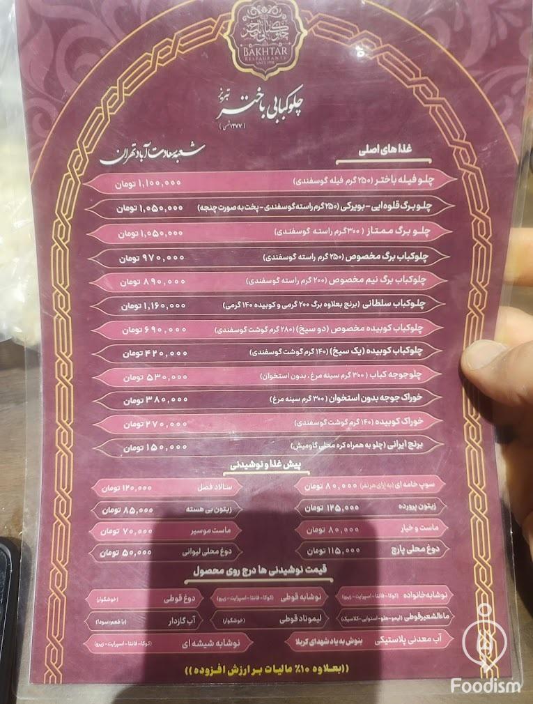 رستوران باختر شعبه سعادت آباد تهران یکی از چلوکبابی های محبوب است که محیط شیک و خانوادگی دارد. کباب برگ و سوپ خامه پرطرفدارترین آیتم منو باختر است.