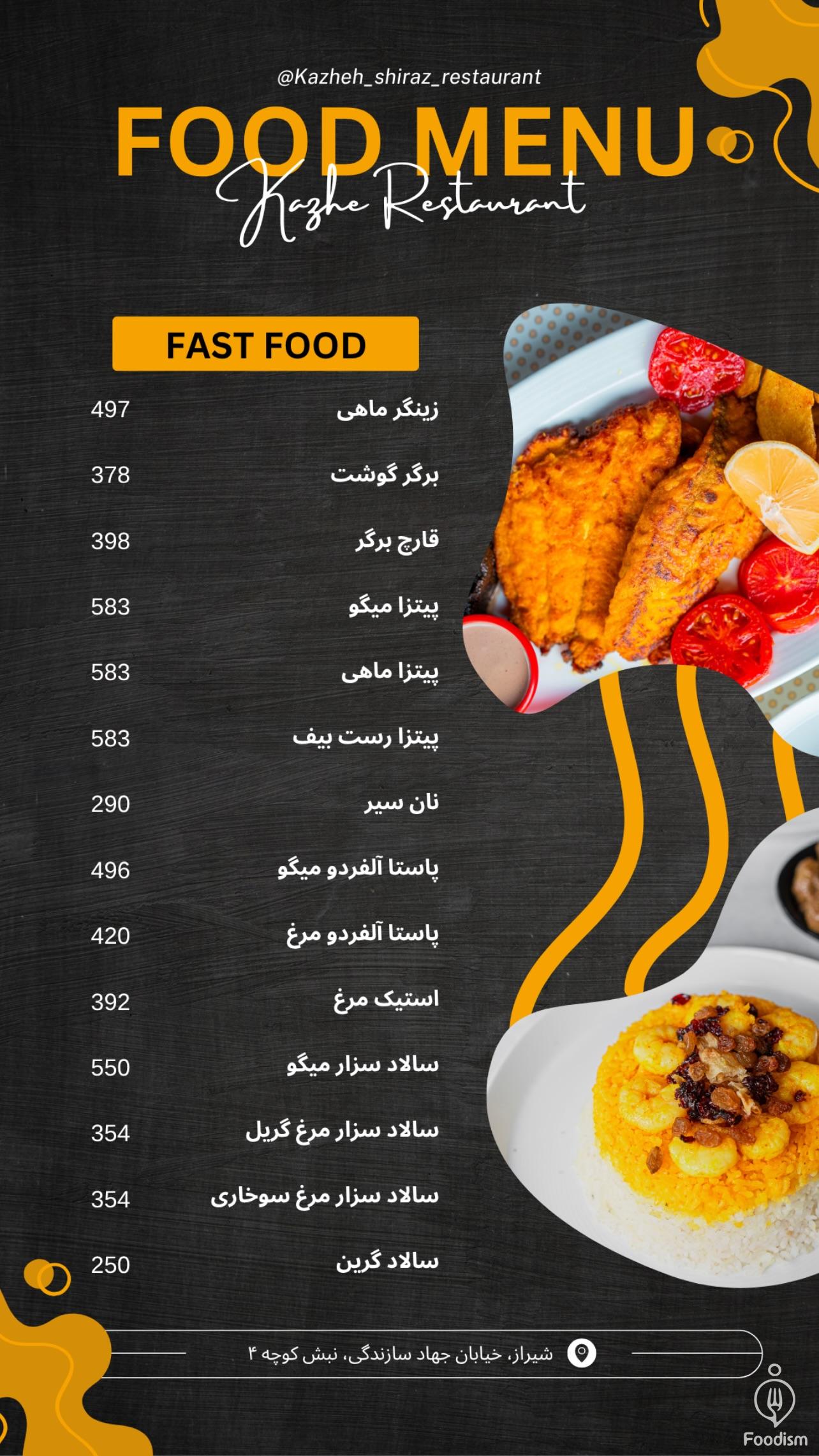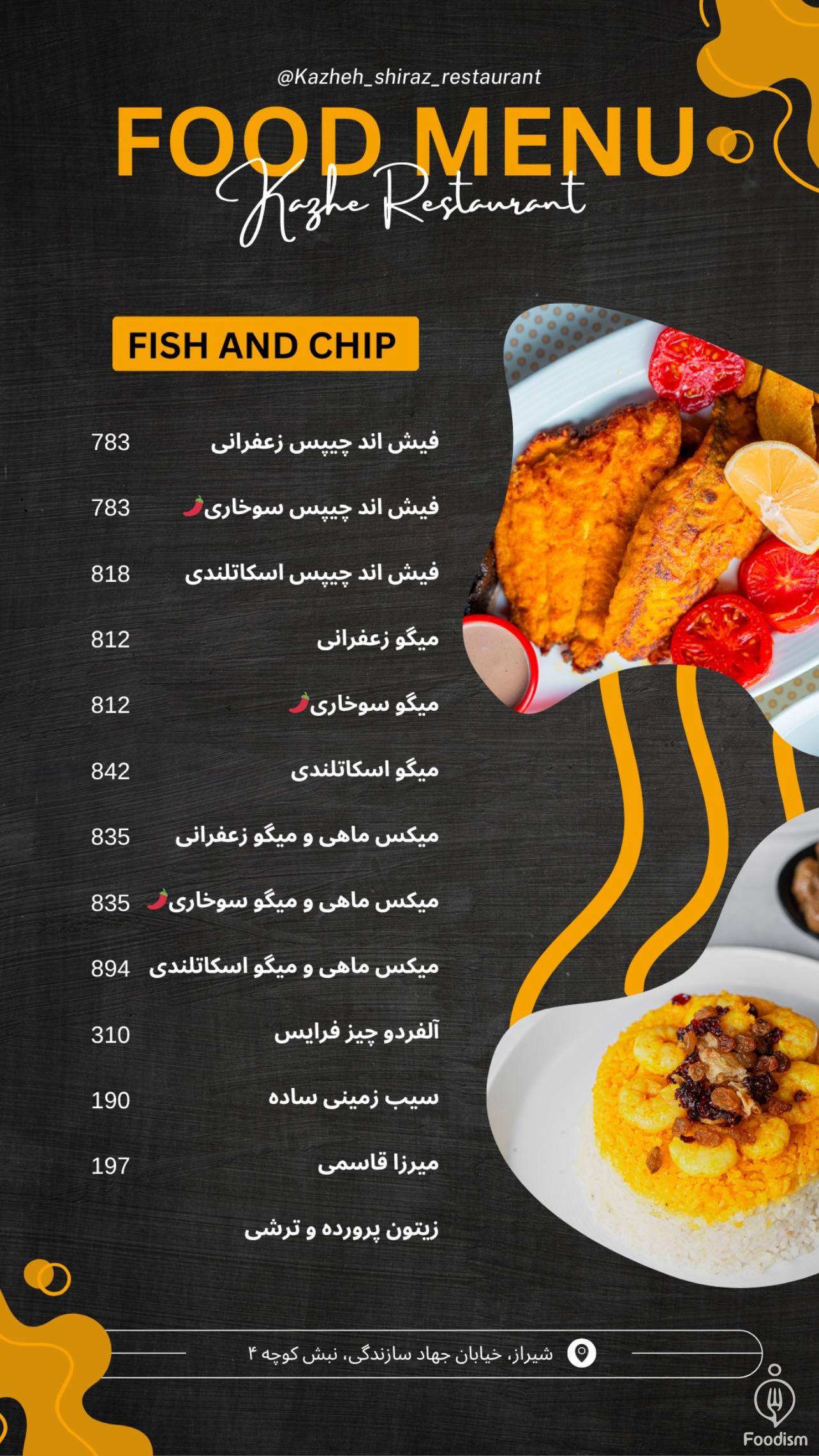 🍴 منو رستوران دریایی کاژه شیراز